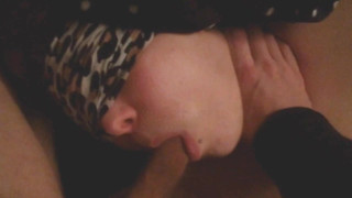 Un porc gras legat la ochi suge pula