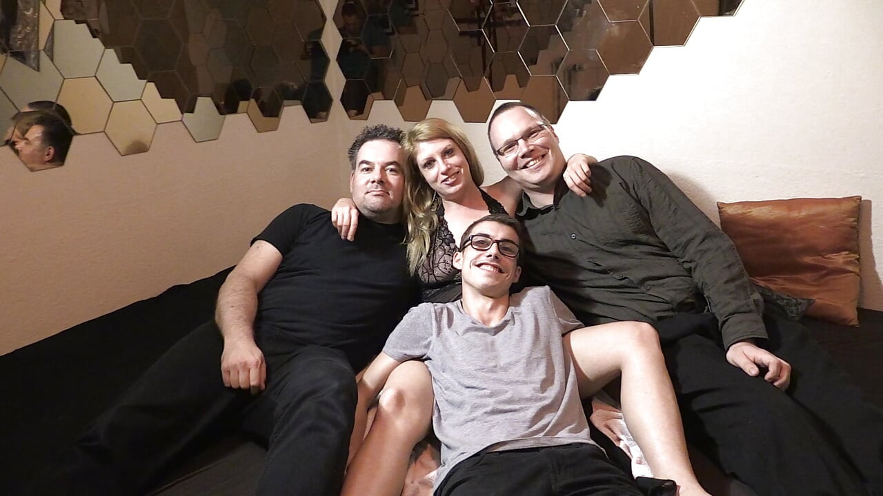 Sex în grup interrasial cu o roșcată țâțoasă cu sex dur și ejaculare înăuntru
